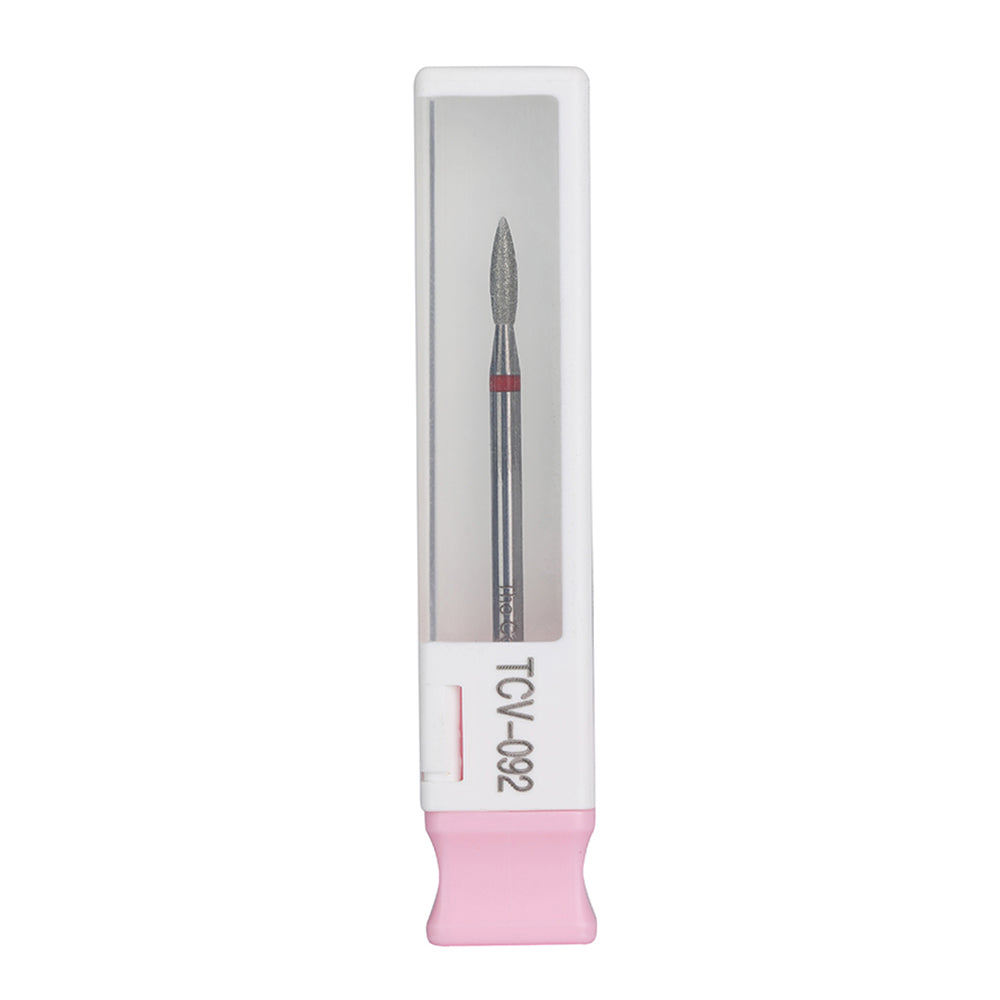ראש שיוף בצורת להבה עם קצה שפיצי, בציפוי יהלום סינתטי עדין. מיועד לעבודה מדויקת וממוקדת במיוחד באזורים צרים או לפינות קטנות, מספק גימור חלק ומדויק מבלי לפגוע בעור או בציפורן.